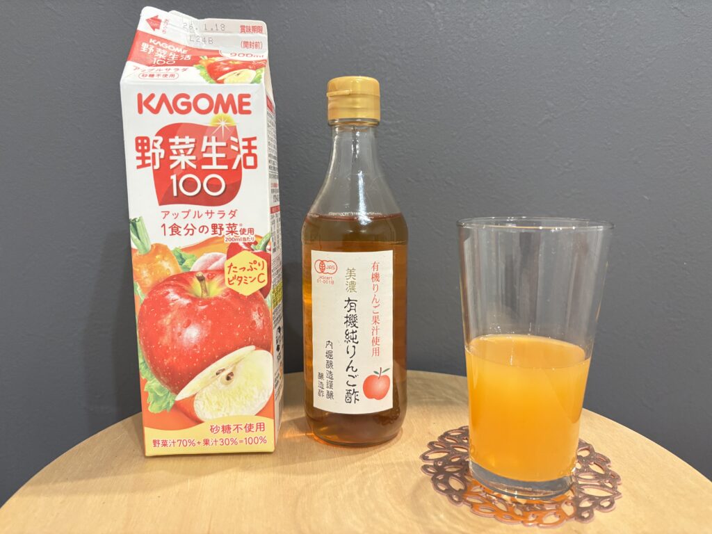 甘みがある野菜ジュースに純りんご酢は合わないわけがない!ゴクゴク飲めてしまう美味しさです。