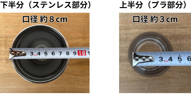 下半分はステンレス、上半分はプラスチック素材ですが、プラスチック部分にはガラスのような重厚感があり、見た目にチープさはありません。