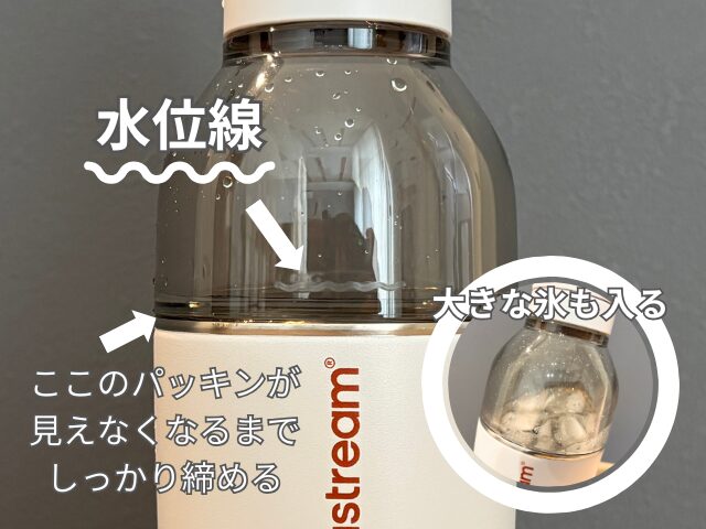 また、炭酸ガスは冷えた液体ほど溶けやすいため、あらかじめボトルに水を入れて冷蔵庫で冷やしておくのもおすすめです。