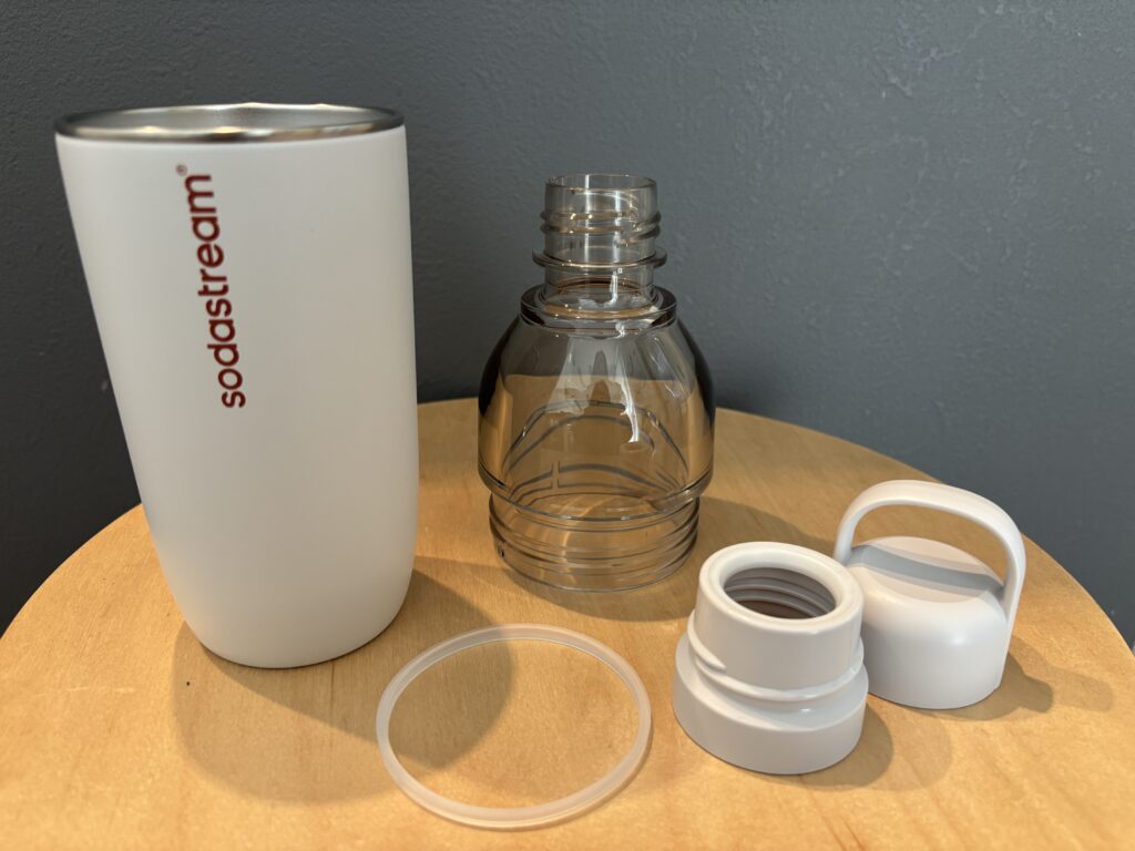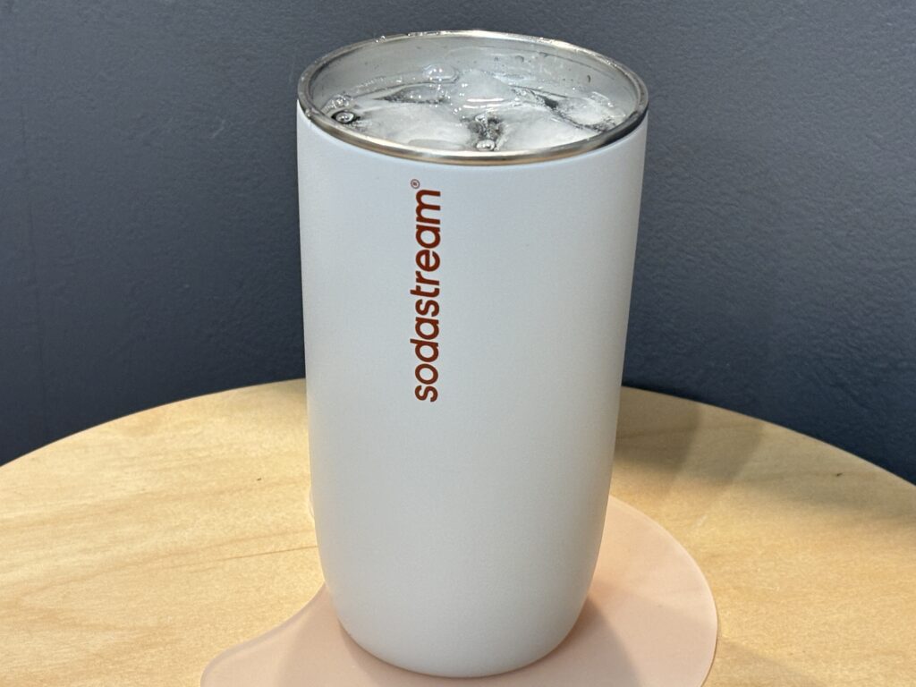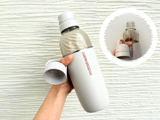ソーダストリームには、同じく本体に取り付けて使える『炭酸飲料対応ステンレスボトル』もありますが、そちらは口径がやや狭く、お手入れのしやすさや水位線の見やすさの面で少し気になる部分がありました。
